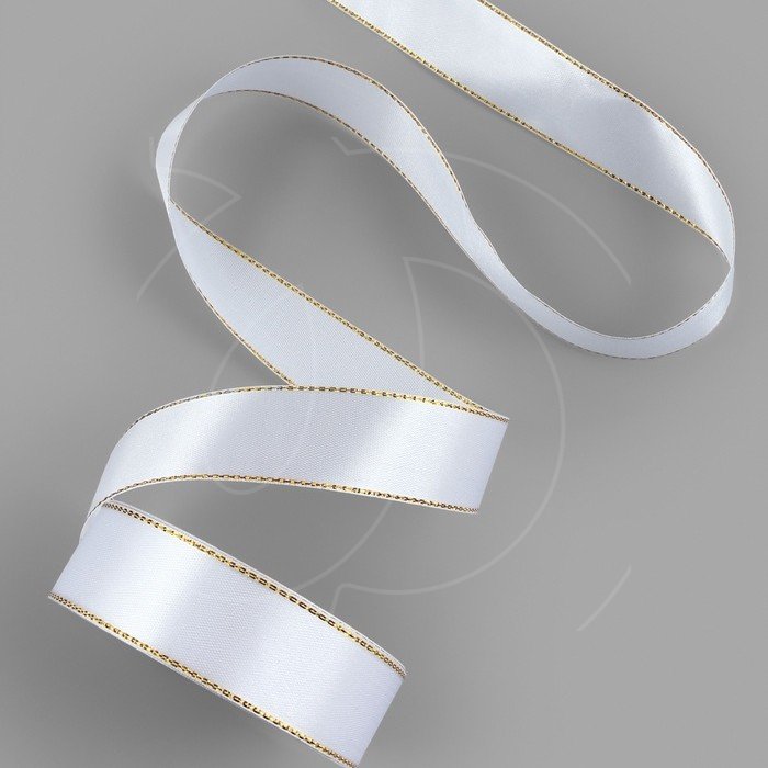 Доставка Лента для декора и упаковки Атласная Белая с золотым люрексом 2,5 см из магазина в вашем городе: