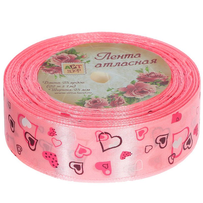 Доставка Лента для декора и упаковки Атласная с сердечками Розовая 2,5 см из магазина в вашем городе: