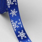 Лента для декора и упаковки Атласная Снежинки Синяя 1,5 см