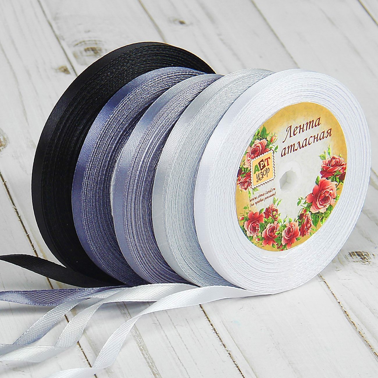 Набор лент для декора и упаковки Оттенки серого 7мм 5 шт