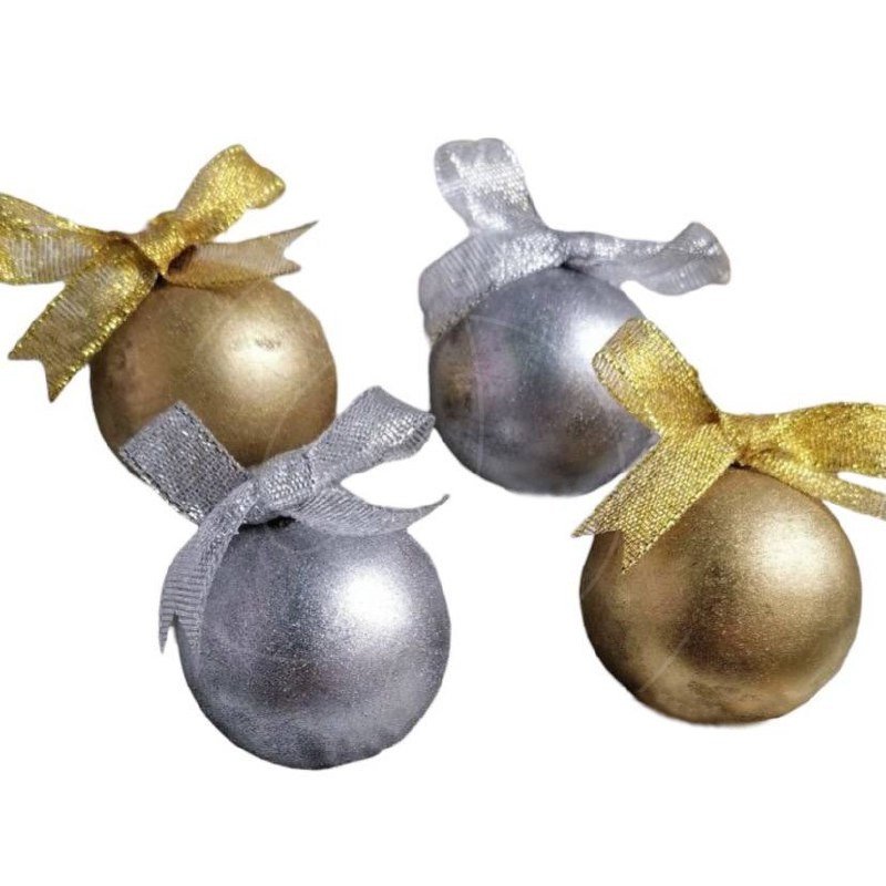 Добрый день, форма выполнена в виде елочных игрушек шариков, бантики в форму не входят