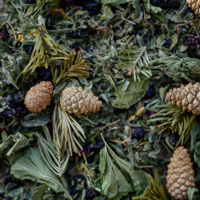 | Состав | жимолость, курильский чай, лист чёрной смородины, пихтовая лапка, сосновая шишка, черника |