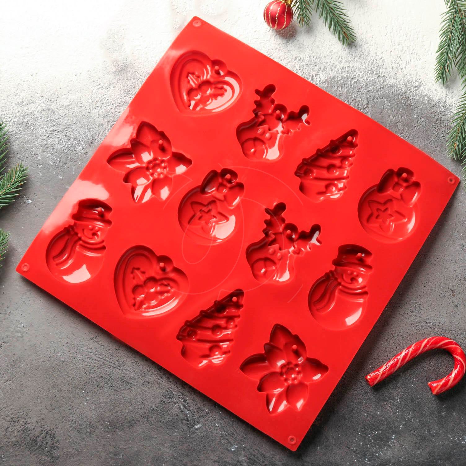 Доставка Форма силиконовая для шоколада "Ёлочки игрушки" 12 шт из магазина в вашем городе: