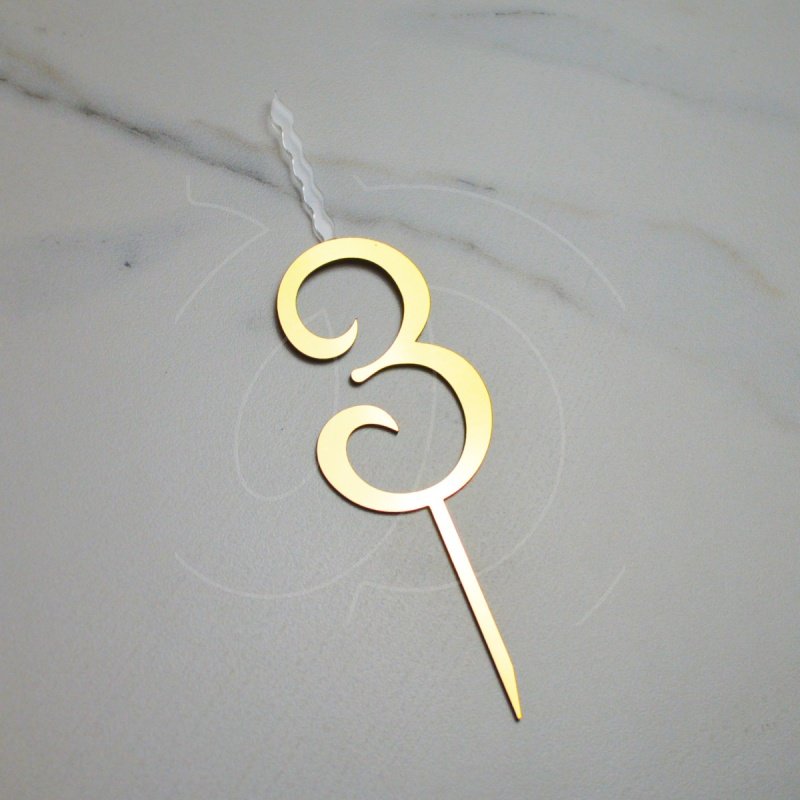 Свеча-топпер декоративная акриловая Цифра "3" Золото