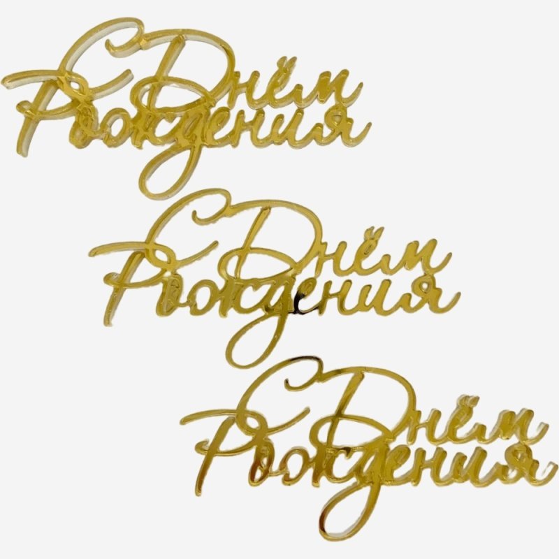 Доставка Набор топперов декоративных акриловых "С Днём Рождения" Золото 3 шт из магазина в вашем городе: