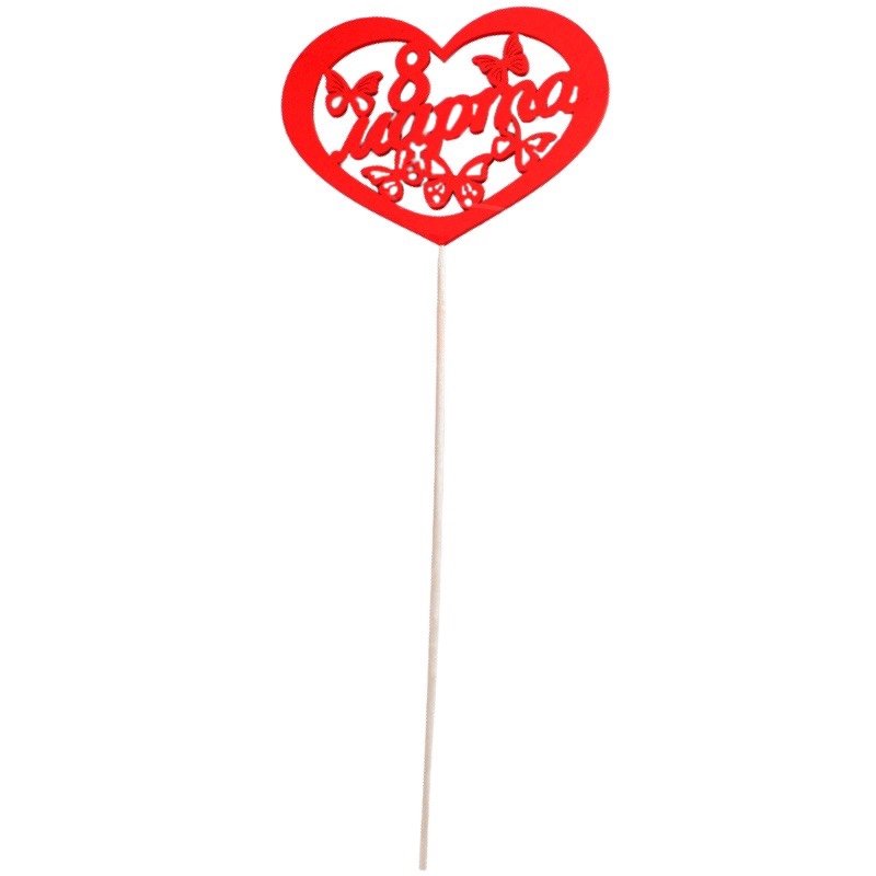 Топпер выполнен в виде красного сердца и надписи “8 марта”.
