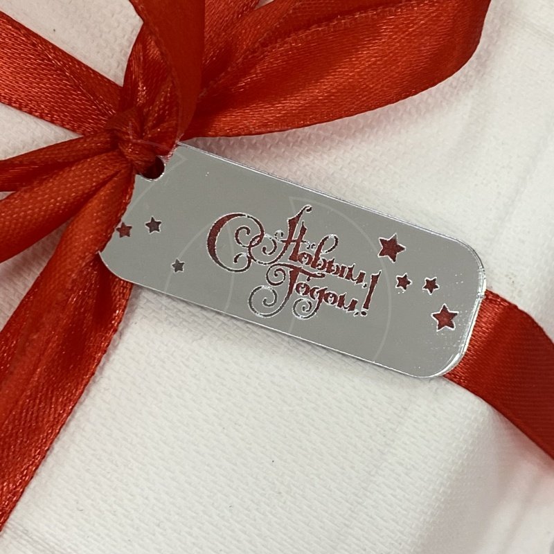Доставка Топпер декоративный акриловый "С Новым годом. Бирка" Серебро 5х2 см из магазина в вашем городе: