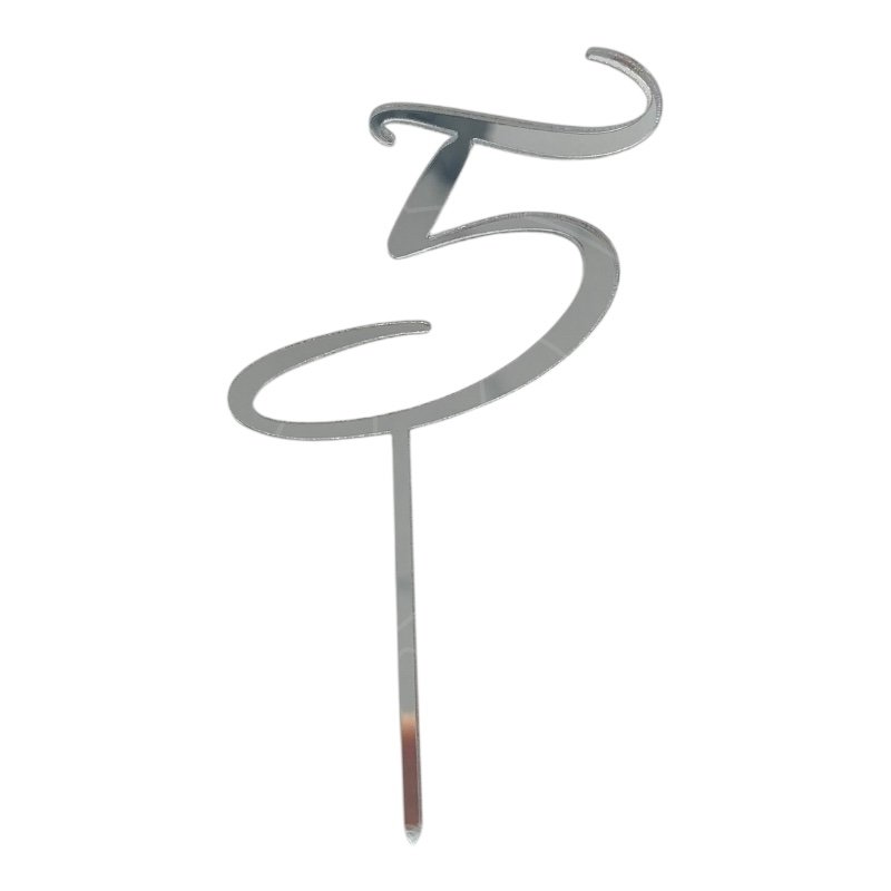 Доставка Топпер декоративный акриловый "Цифра 5 курсив" Серебро из магазина в вашем городе: