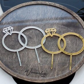 Доставка Топпер декоративный акриловый "Кольца свадебные" Золотой 10 см из магазина в вашем городе:
