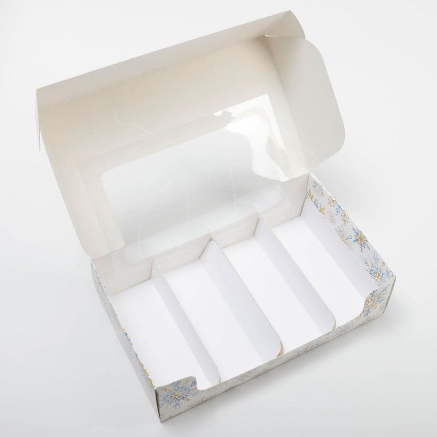 Доставка Коробка на 4 эклера и эскимо с окном "Снежинки" 25х15х7 см из магазина в вашем городе: