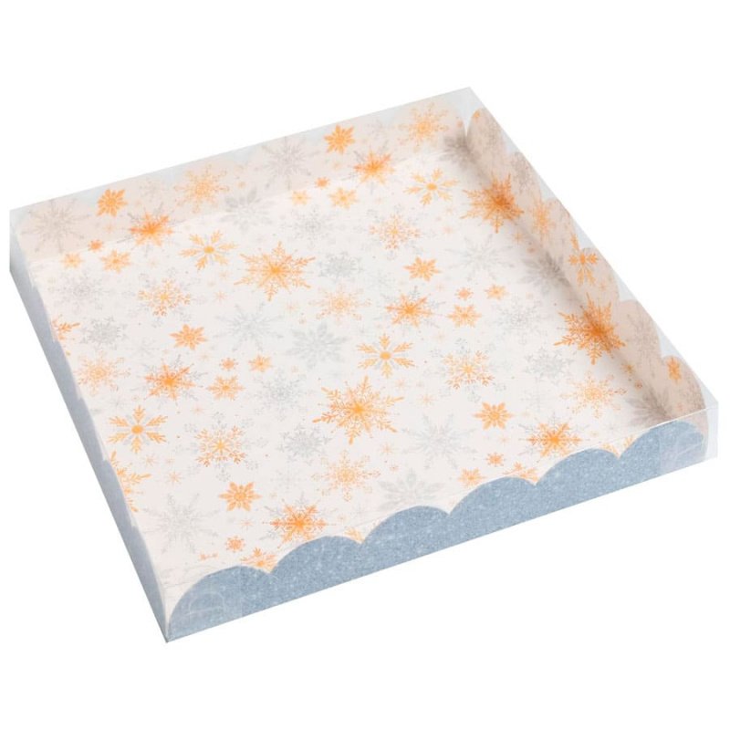 Доставка Коробка для печенья/конфет с прозрачной крышкой "Снежинки" 21х21х3 см из магазина в вашем городе: