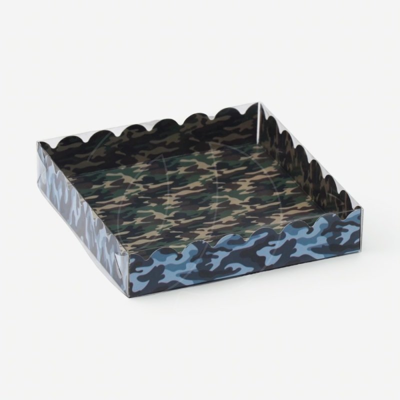 Коробка для сладостей с прозрачной крышкой "Хаки" 15х15х3 см