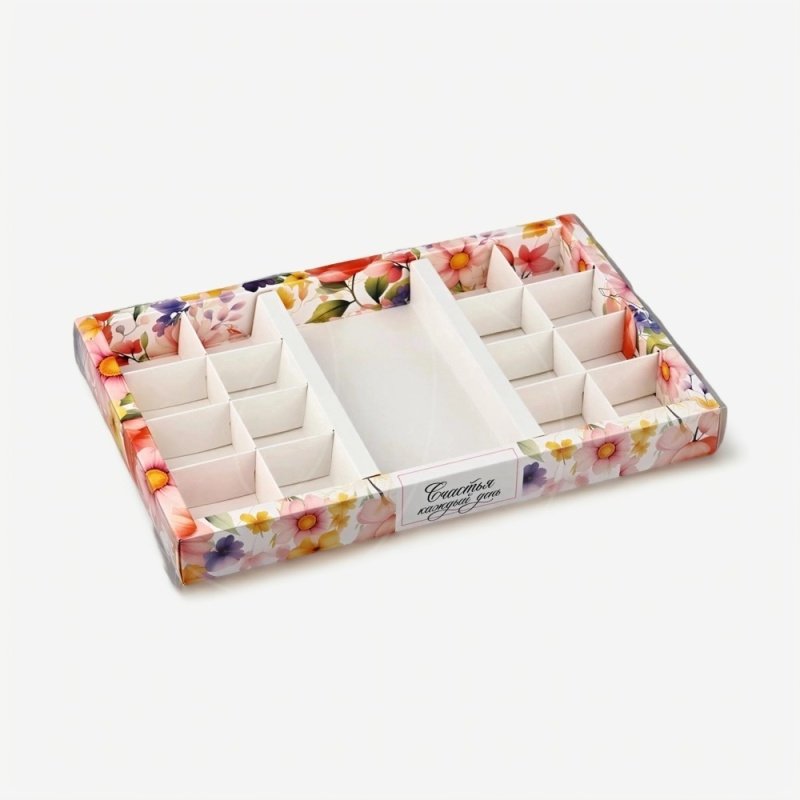Коробка на 16 конфет и шоколадную плитку с окном "Счастья" 28,5х18,5х3 см