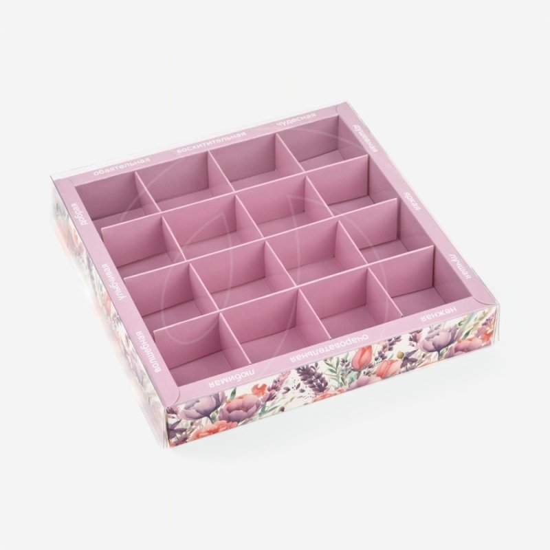 Доставка Коробка на 16 конфет с пластиковой крышкой "Комплименты" 19х19х3 см из магазина в вашем городе: