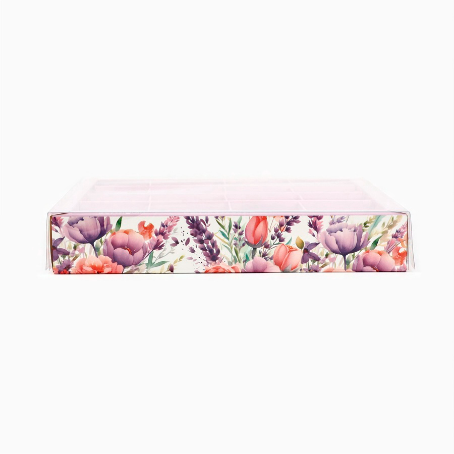 Коробка на 16 конфет с пластиковой крышкой "Комплименты" 19х19х3 см
