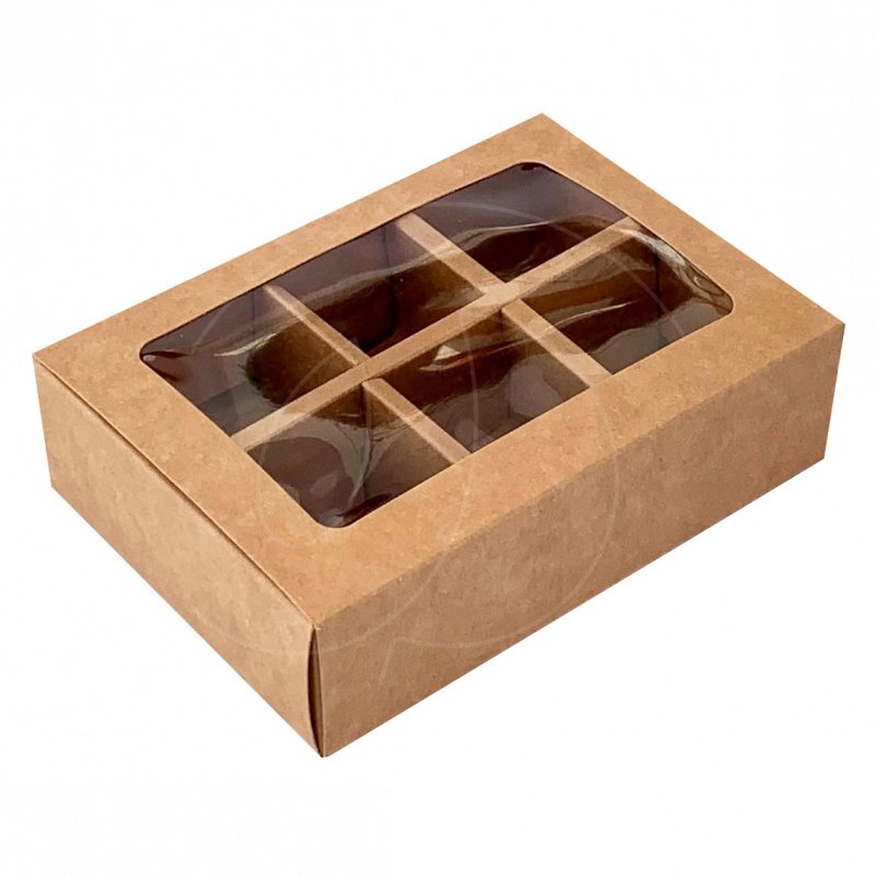 Коробка на 6 конфет с окном крафт 13,7х9,8х3,8 см