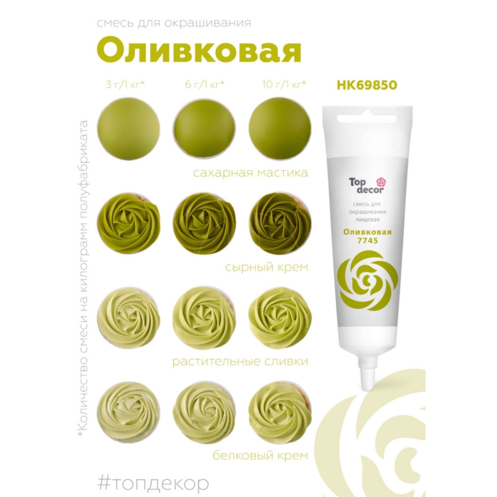 Доставка Краситель пищевой гелевый водорастворимый Top Decor "Оливковый" 100 г из магазина в вашем городе: