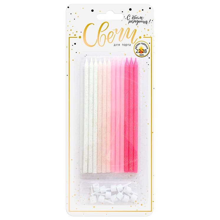 Доставка Свечи декоративные Нежно-розовый микс с блёстками 15 см 12 шт из магазина в вашем городе: